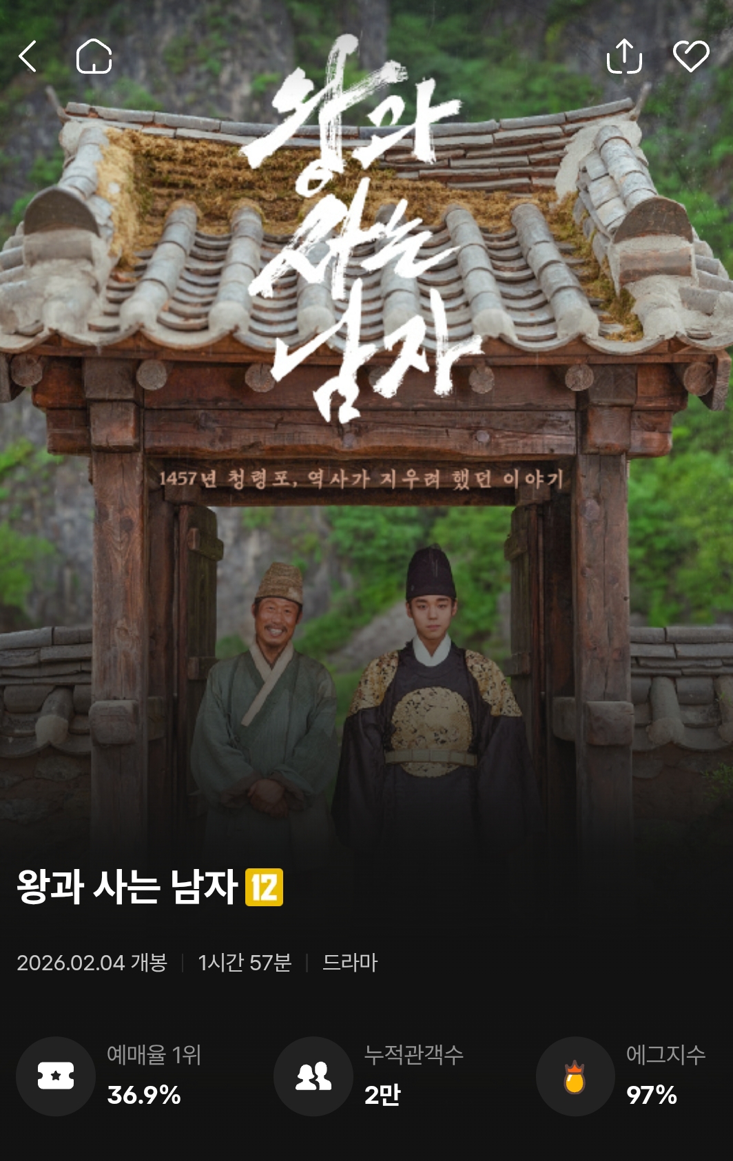작성시간 26.02.07 진짜 연출이 … 몰입을 방해할 정도인데 역사가 너무 슬프고 두 배우가 이 영화를 살림 ㅠ 엔딩은 진짜 너무 먹먹해 ㅠㅠ 관객들 다 울고 나도 울고 ㅠㅠ