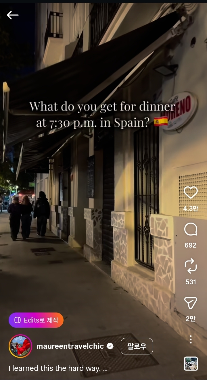 스페인 저녁 7시반