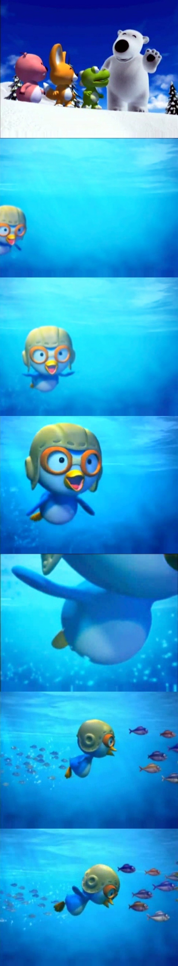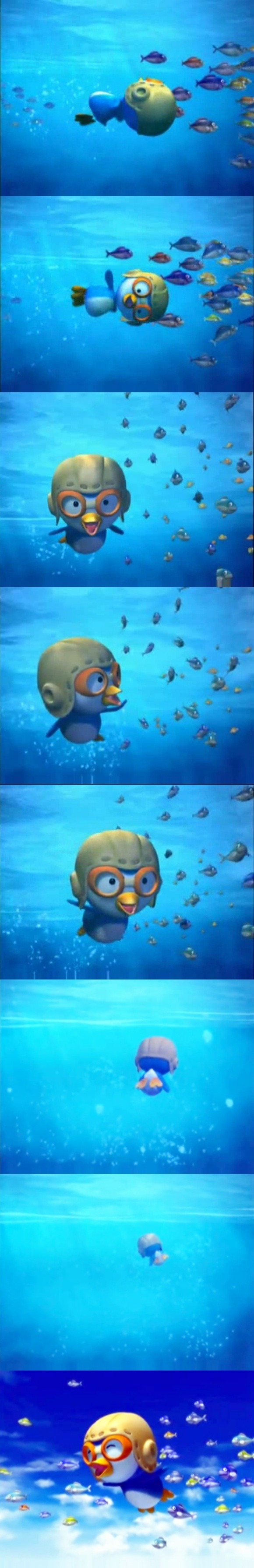 포비의 말대로 뽀로로는 바닷속을 자유롭게 신나게 날고있었다. 마치 하늘을 나는것처럼