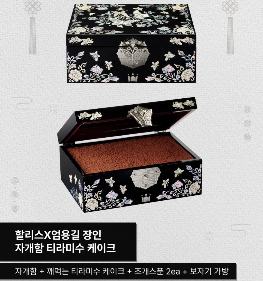 국가인증 문화재 기능장 엄용길 장인의 자개함과 할리스 티라미수를 콜라보한 제품이 출시됐었음