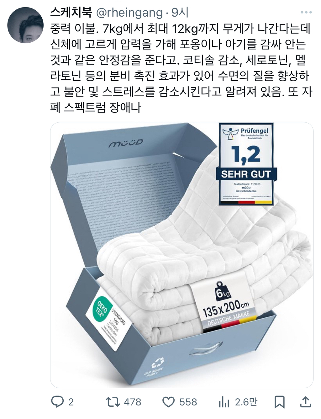 작성자아이고대단하다 작성시간 26.02.05 어쩐지 무거운이불 덮고 옆으로 웅크려자면 안정감있고 좋더라