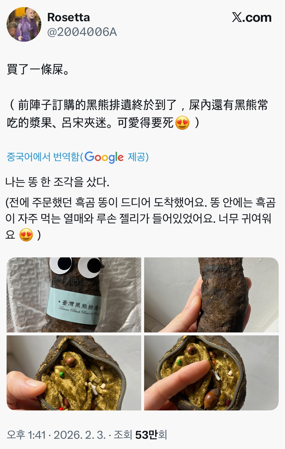 [흥미돋]대만 흑곰교육관 굿즈 작성자열빙어|작성시간26.02.05|조회수18,143 목록 댓글 19 글자크기 작게가 글자크기 크게가 출처: https://x.com/2004006a/status/2018545458558505467?s=46&t=KlDqBlNqBJ3fwIZTZ3FsOg흑곰 똥 파우치🐻 다음검색 현재 게시글 추가 기능 열기 북마크 공유하기 신고 센터로 신고 댓글 댓글 19 댓글쓰기 답글쓰기 댓글 리스트 작성자띨룽 | 작성시간 26.02.05 굳이굳이.! 작성자소금우유크림빵 | 작성시간 26.02.05 ㅅ뷰ㅠㅠㅠ 진짜같잖아 작성자Arihanna Grande | 작성시간 26.02.05 저렇게 리얼하게 만들 필요가 있었나요?!? 작성자나 6천원 있어요... | 작성시간 26.02.05 귀여웤ㅋㅋㅋㅋㅋ 작성자킬리안음바페 | 작성시간 26.02.05 탐난다 댓글 전체보기