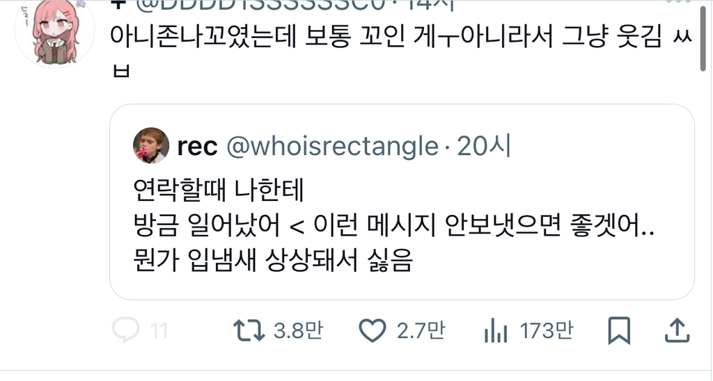 [스크랩] [흥미돋]연락할때 나한테 방금 일어났어 < 이런 메시지 안보냇으면 좋겟어.. 작성자엥엥ㅇ|작성시간26.02.05|조회수47,900 목록 댓글 31 글자크기 작게가 글자크기 크게가 ㅋㅋㅋㅋㅋ 다음검색 스크랩 원문 : *여성시대* 차분한 20대들의 알흠다운 공간 현재 게시글 추가 기능 열기 북마크 공유하기 신고 센터로 신고 댓글 댓글 31 댓글쓰기 답글쓰기 댓글 리스트 작성자삐비비빅 | 작성시간 26.02.05 아시밬ㅋㅋㅋㅋㅋㅋㅋ 작성자빵떡면 | 작성시간 26.02.05 세상에 N 100 나올것 같은 발언이다 작성자두쫀구리구리 | 작성시간 26.02.06 하...아~ 작성자욕 줄이기 | 작성시간 26.02.06 나 마늘보쌈 먹었어 작성자내 꿈은 돈 많은 백수 | 작성시간 26.02.06 ㅋㅋ꙼̈ㅋ̆̎ㅋ̐̈ㅋ̊̈ㅋ꙼̈ㅋ̆̎ㅋ̐̈ㅋ̊̈ㅋ꙼̈ㅋ̆̎ㅋ̐̈ㅋ̊̈ㅋ̄̈ㅋ꙼̈ㅋ̆̎ㅋ̐̈ㅋ̊̈ㅋ꙼̈ 댓글 전체보기