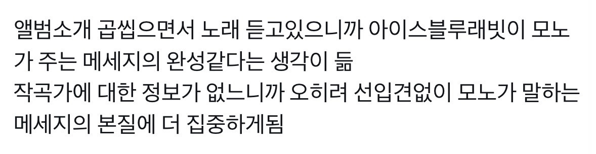 모노가 담은 뜻이랑 대중들에게 남기는 메세지가