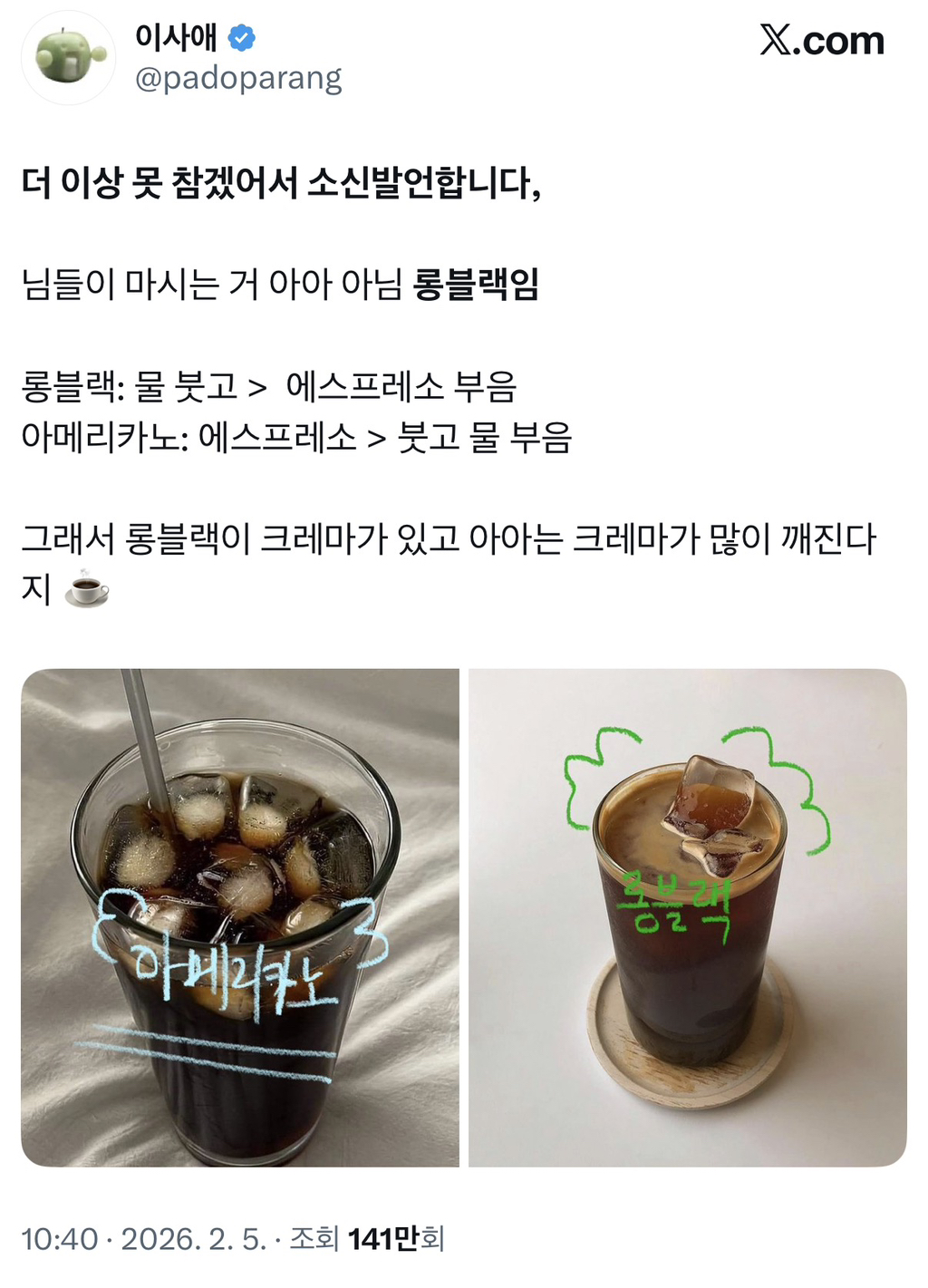 작성자아바라만먹음 작성시간 26.02.07 난 롱블랙이 조음
