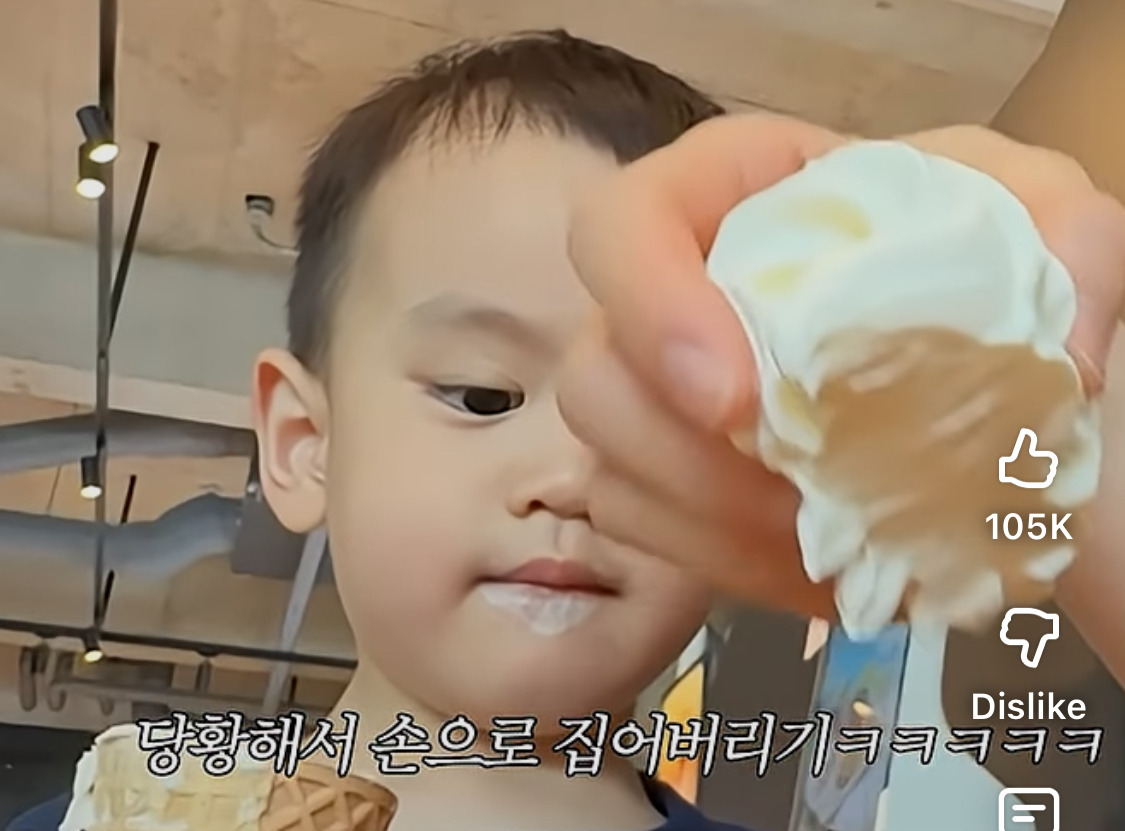 근데 엄마가 아이스크림을 덥썩 잡으니깤ㅋㅋㅋㅋㅋ