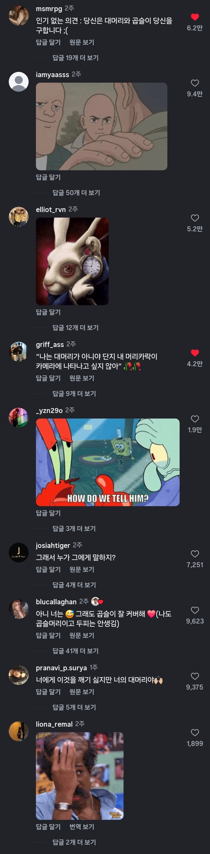 [흥미돋]본인은 대머리가 아니라는 남자 작성자(본인 닉네임.|작성시간26.02.06|조회수70,141 목록 댓글 24 글자크기 작게가 글자크기 크게가 출처: https://www.instagram.com/reel/DT6FV4cki1r/로그인 • Instagram여기를 눌러 링크를 확인하세요www.instagram.com대머리가 아니야곱슬머리일 뿐이야마르면 짠!흠흠..댓글에서누가 진실을 말해줄거냐고ㅠ 다음검색 현재 게시글 추가 기능 열기 북마크 공유하기 신고 센터로 신고 댓글 댓글 24 댓글쓰기 답글쓰기 댓글 리스트 작성자홀라릐 | 작성시간 26.02.06 잇욷비순 작성자30대직장인 | 작성시간 26.02.06 대머리(진) 작성자VTIC 신청려 | 작성시간 26.02.06 심었는데 저렇군 작성자디저트먹음이 | 작성시간 26.02.06 고개숙인 남자 작성자카레 노래 | 작성시간 26.02.06 유 윌비 볼드. 잇 우드 비 순. 댓글 전체보기