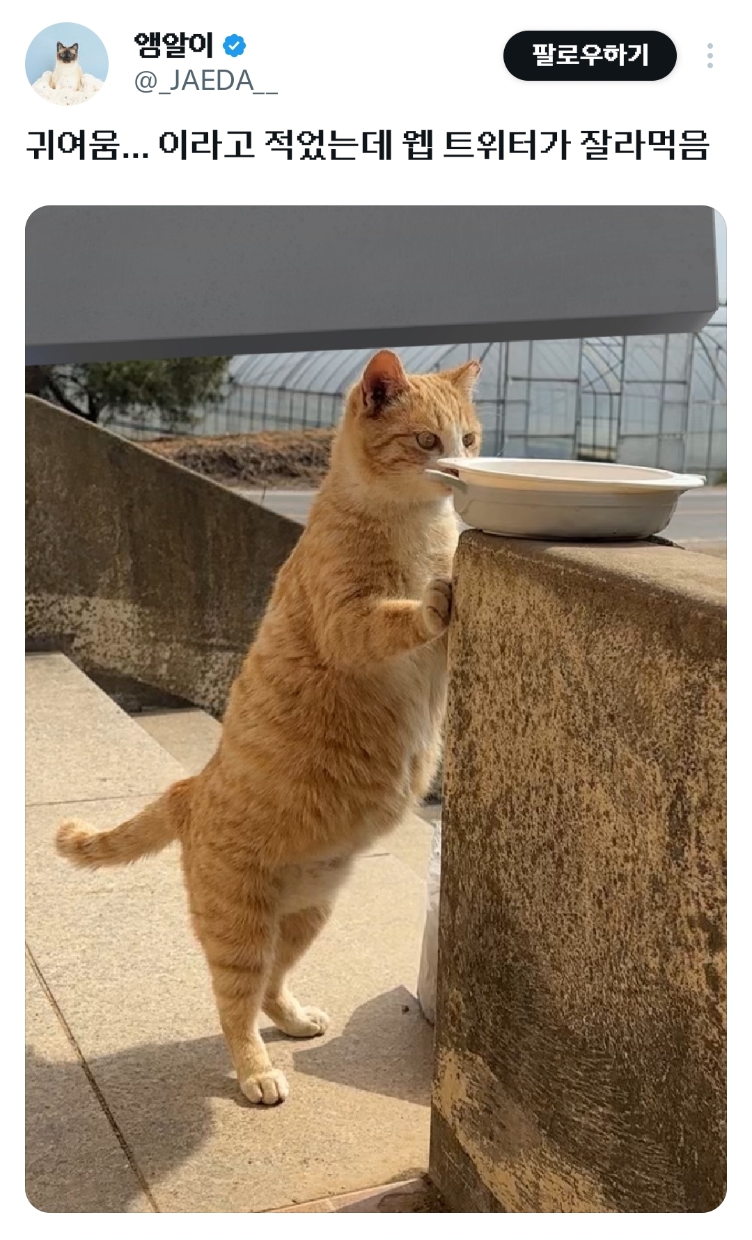 [힐링]우리집 마당에 정착한 치즈가 진짜..x 작성자누룩곰팡이|작성시간26.02.06|조회수54,251 목록 댓글 50 글자크기 작게가 글자크기 크게가 출처: https://x.com/i/status/2018661806055862360아침 출근때매 다운된 기분 힐링하고가 ..🥹 다음검색 현재 게시글 추가 기능 열기 북마크 공유하기 신고 센터로 신고 댓글 댓글 50 댓글쓰기 답글쓰기 댓글 리스트 작성자첫만남은 섬광처럼 | 작성시간 26.02.06 배봐 함만 만져볼게 함만요 작성자정희찬 | 작성시간 26.02.06 배 봐ㅜㅜㅜㅠ 뿌으르으르룰루르르르를 작성자PARK HYOSHIN | 작성시간 26.02.06 아악ㅠㅠㅠㅠㅠㅠ 귀여워라 작성자수 지 | 작성시간 26.02.06 저 배 어쩔껀데 ㅜㅜㅜㅜㅜㅜㅜ 작성자민트조커 | 작성시간 26.02.06 아아아아아아아ㅏ아아 댓글 전체보기