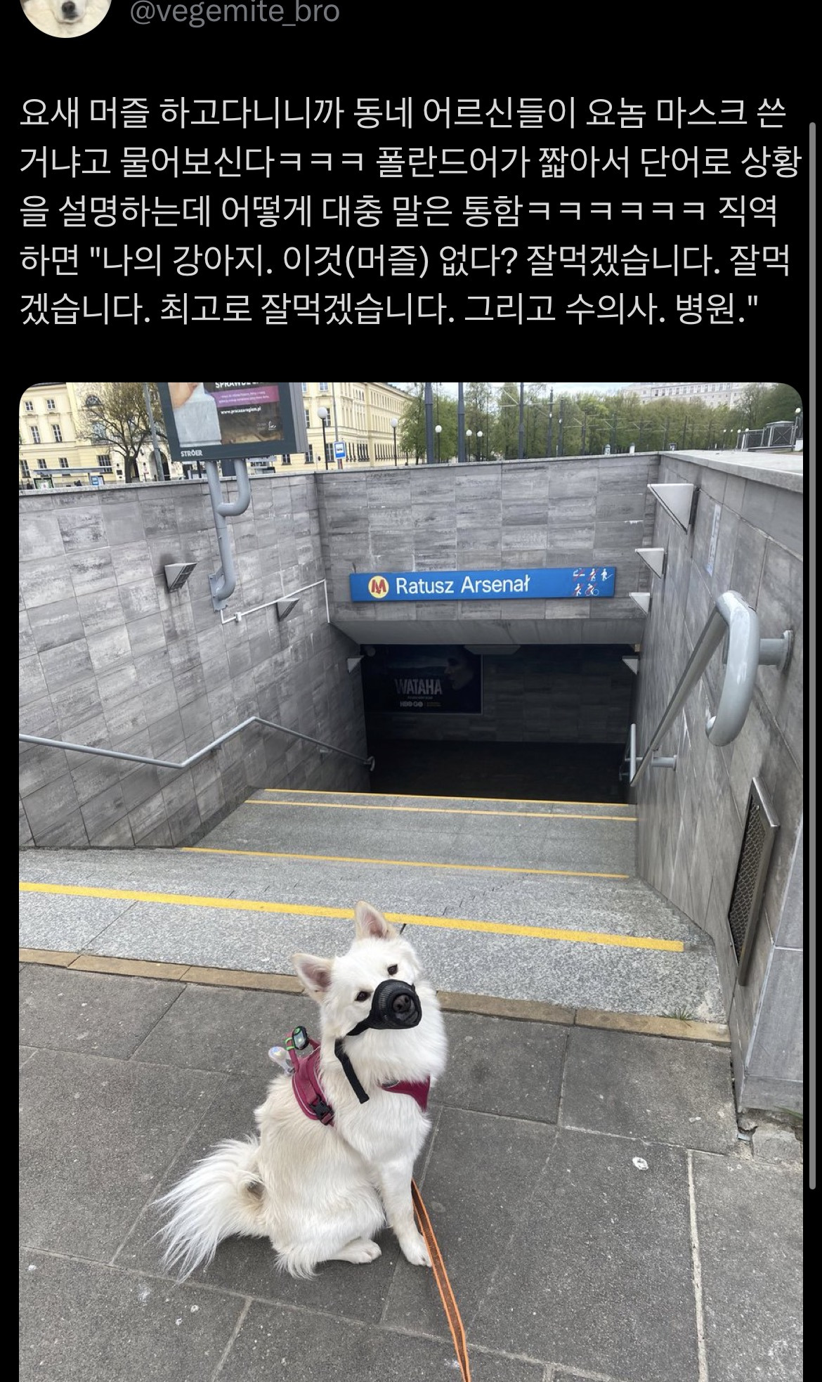 요새 머즐 하고다니니까 동네 어르신들이 요놈 마스크 쓴 거냐고 물어보신다ㅋㅋ 폴란드어가 짧아서 단어로 상황 을 설명하는데 어떻게 대충 말은 통함ㅋㅋㅋㅋㅋㅋ 직역