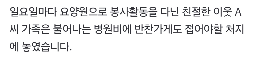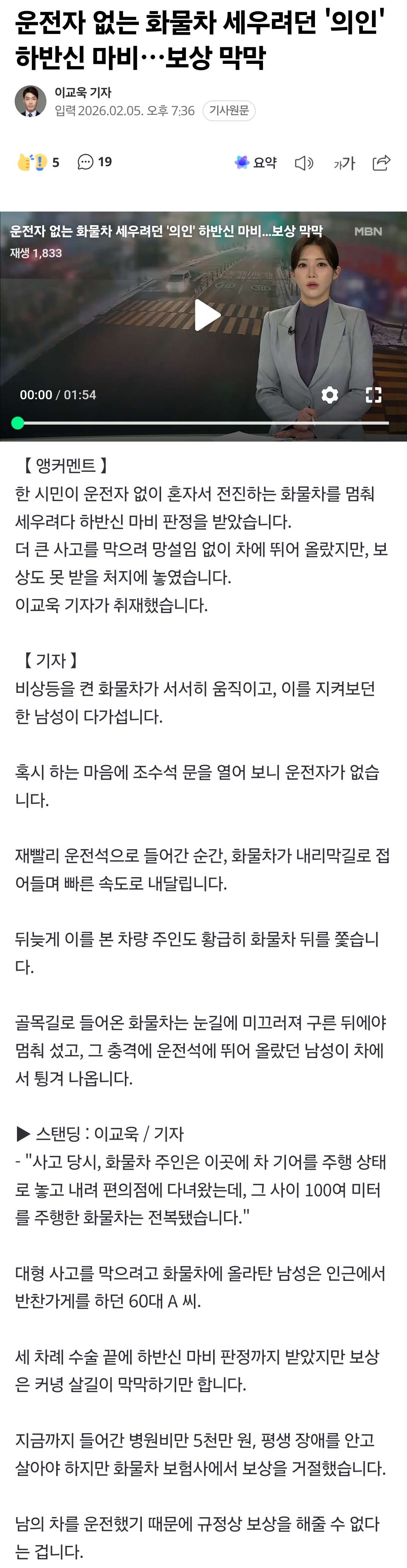[여시뉴스데스크]운전자 없는 화물차 세우려던 '의인' 하반신 마비…보상 막막 작성자검동이|작성시간26.02.06|조회수11,069 목록 댓글 71 글자크기 작게가 글자크기 크게가 출처: https://n.news.naver.com/mnews/article/057/0001933970?sid=102 ... 전문은 출처로.. 다음검색 현재 게시글 추가 기능 열기 북마크 공유하기 신고 센터로 신고 댓글 댓글 71 댓글쓰기 답글쓰기 댓글 리스트 작성자정떡뚤 | 작성시간 26.02.07 와진짜 너무하네.. 이러니 점점 더 팍팍해지고 작성자일몰맛집 | 작성시간 26.02.07 헉 어떡해 ㅠㅠㅠㅠ 너무 안타깝다... 작성자토마토짱 | 작성시간 26.02.07 모금이라도 열렸으면..ㅜㅜ 작성자와와헴ㄷㄷ;; | 작성시간 26.02.07 아니 이건 어떻게든 도와야죠... ㅠㅠㅠ 작성자헬로부기 | 작성시간 26.02.25 와진짜너무안타깝다 댓글 전체보기