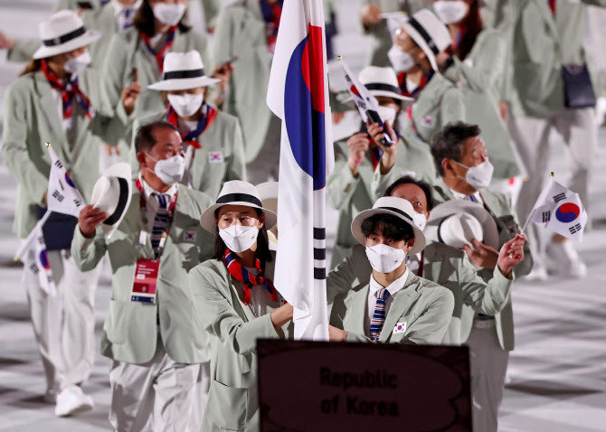 그 입장할때 태극기 드는 그거 맞음