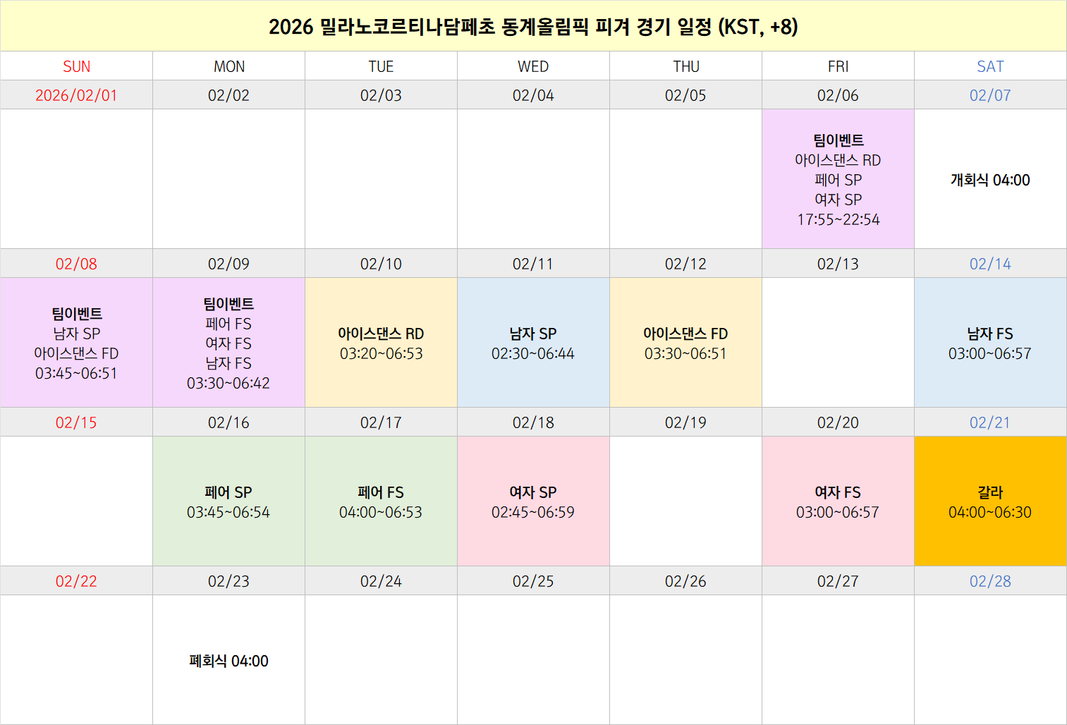 (우리나라 시간 기준 일정표야)