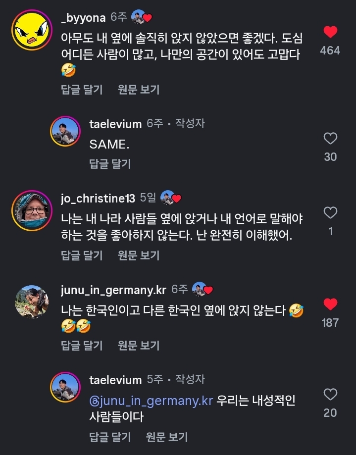 외국인 옆에 앉지않지?