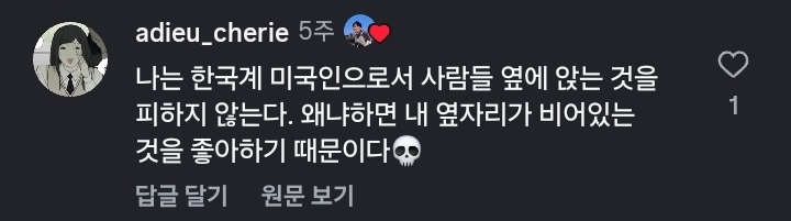 그냥 아무도 옆에 앉지않는걸 더 좋아한다