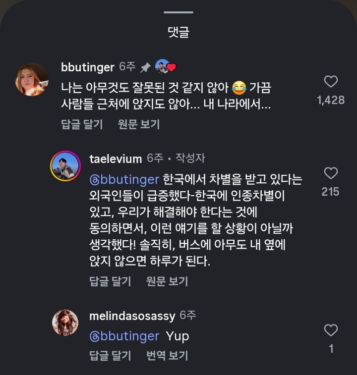 댓글에 외국인들이 (캡처는 번역한거)