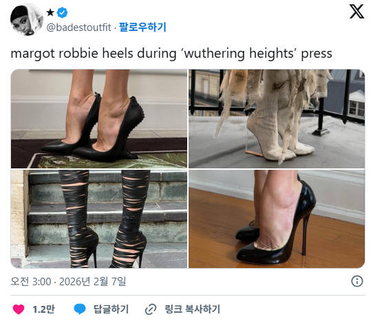 영화 '폭풍의 언덕' 프레스에 신고 나온 루부탱 구두