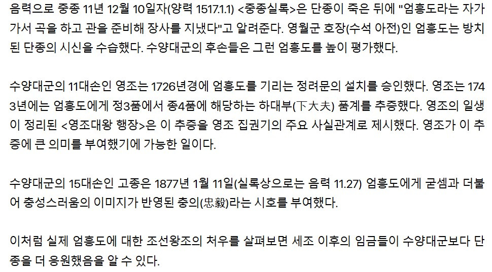 조선왕조실록에 실린 엄흥도 관련 내용