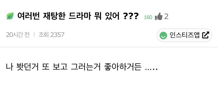 [흥미돋]여러번 재탕한 드라마 뭐 있어?? 작성자알티드래곤|작성시간26.02.07|조회수15,046 목록 댓글 258 글자크기 작게가 글자크기 크게가 출처: 여성시대 알티드래곤 인스티즈난 미스터션샤인도깨비대장금나의아저씨보보경심각 5번씩 본 거 같음 다음검색 현재 게시글 추가 기능 열기 북마크 공유하기 신고 센터로 신고 댓글 댓글 258 댓글쓰기 답글쓰기 댓글 리스트 작성자california summer feelings | 작성시간 26.02.08 또 오해영.....흉자드라마긴해 작성자1인분만 먹자 | 작성시간 26.02.08 질투의 화신 작성자chickpeace | 작성시간 26.02.09 연애시대 연애의발견 작성자빵집여시 | 작성시간 26.02.09 커프 작성자엄청난마법사 | 작성시간 26.02.09 인어아가씨 전원일기 라켓소년단 스토브리그 응답하라 1994 댓글 전체보기