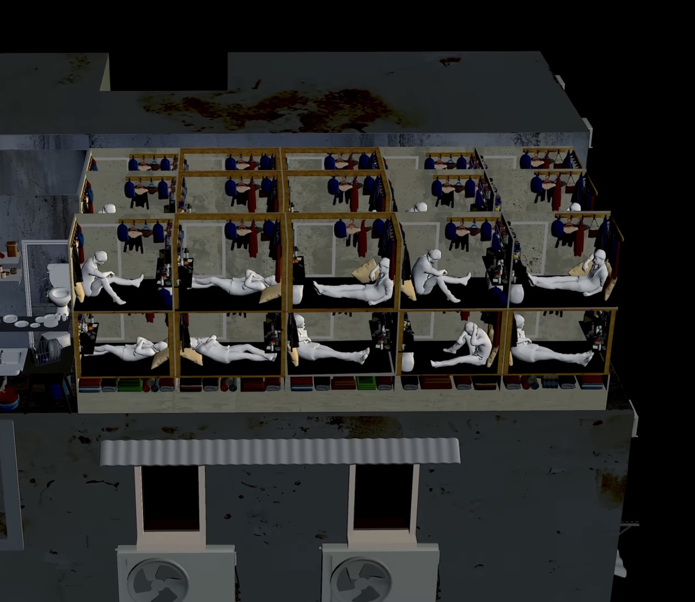불법증축해서 안그래도 좁은 집을 위아래층으로 나눠서 침대 토굴 하나가 집 하나임