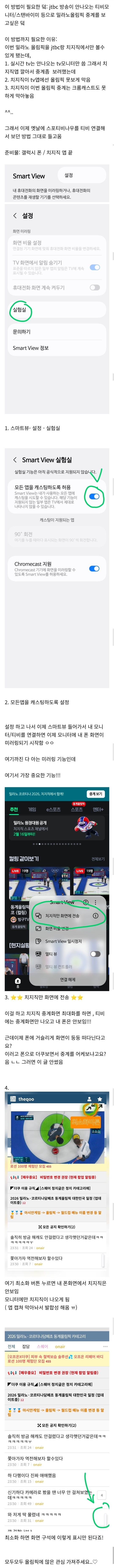 [흥미돋]갤럭시 스마트뷰 이용해서 모니터로 밀라노 올림픽 보는법 (치지직 중계 티비모니터로 보기).tip 작성자햬빙곡선|작성시간26.02.08|조회수8,529 목록 댓글 6 글자크기 작게가 글자크기 크게가 출처: 여성시대 햬빙곡선https://theqoo.net/square/4087699462더쿠 - 갤럭시 스마트뷰 이용해서 모니터로 밀라노 올림픽 보는법 (치지직 중계 티비모니터로 보여기를 눌러 링크를 확인하세요theqoo.net 다음검색 현재 게시글 추가 기능 열기 북마크 공유하기 신고 센터로 신고 댓글 댓글 6 댓글쓰기 답글쓰기 댓글 리스트 작성자TheFall | 작성시간 26.02.08 와 대박 이거 완전 꿀팁이다 ㅋㅋㅋㅋㅋ 작성자쇠고기죽 | 작성시간 26.02.08 와씨 너무좋다 고마워!!! 작성자해포리터 | 작성시간 26.02.08 와 개쩐다고화질이다 고마워 여시가 최고다 작성자포에버포레버 | 작성시간 26.02.08 헐 고마워! 작성자우지라떼 | 작성시간 26.02.08 아이폰은요 ㅠ 댓글 전체보기