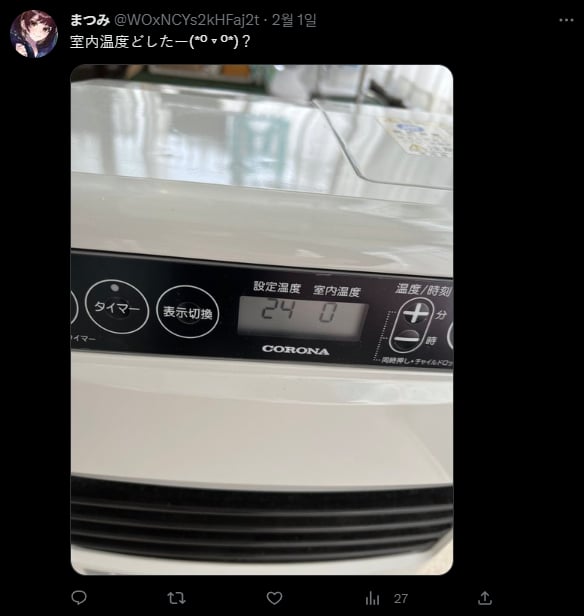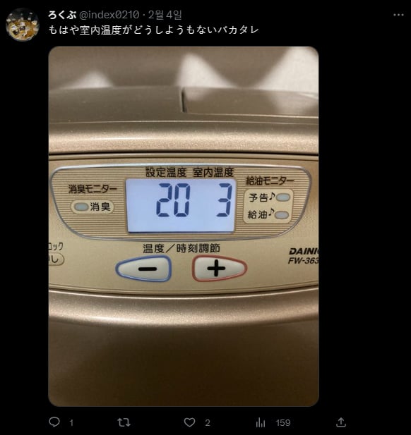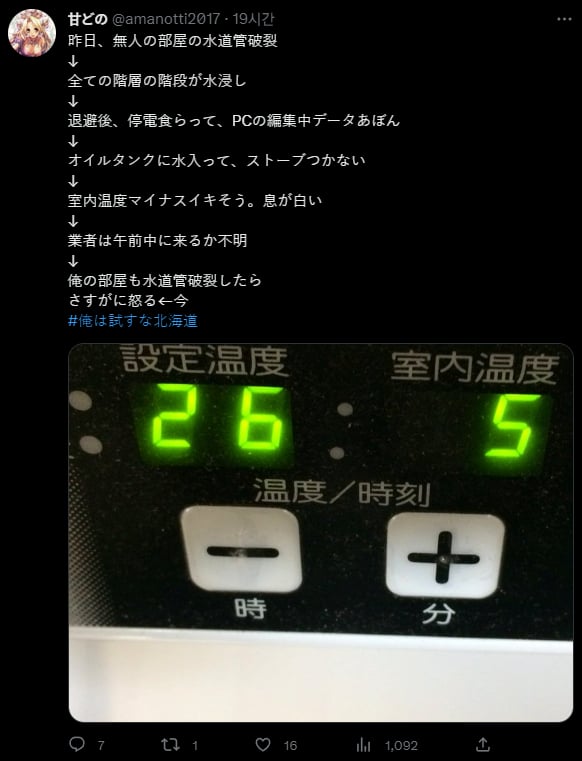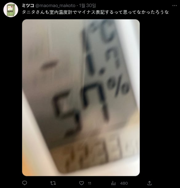 [스크랩] [흥미돋]일본 실내온도 인증 트위터 작성자본인 닉네임.|작성시간26.02.08|조회수51,436 목록 댓글 83 글자크기 작게가 글자크기 크게가 1도3도5도0도-1도영하는 표시가 안돼서 Lo뜸 다음검색 스크랩 원문 : 도탁스 (DOTAX) 현재 게시글 추가 기능 열기 북마크 공유하기 신고 센터로 신고 댓글 댓글 83 댓글쓰기 답글쓰기 댓글 리스트 작성자Moleskine | 작성시간 26.02.09 텐트야? 작성자판 빙빙 | 작성시간 26.02.09 집이 영하여? 작성자열한시 반 이후에 목격시 자라고해줘 | 작성시간 26.02.09 내방 27돈데 작성자넵넵앗넵 | 작성시간 26.02.09 근데 왜 안죽지? 작성자ASM R | 작성시간 26.02.14 21도 아래로 떨어지면 춥던데 0도에서 어케 살아 뭔 텐트 쳐놓고 사는 것도 아니고.. 댓글 전체보기