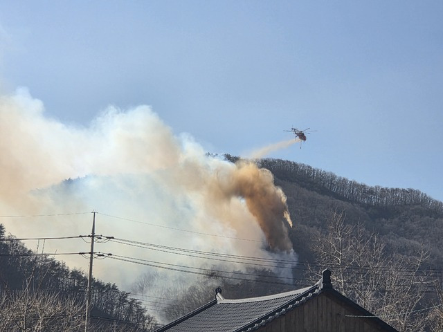 소방당국은 소방호스가 얼어붙으면서 진화에 어려움을 겪고 있다. 이어 군부대 헬기까지 동원해 2시 현재 38대의 헬기가 진화작업에 참여하고 있다.