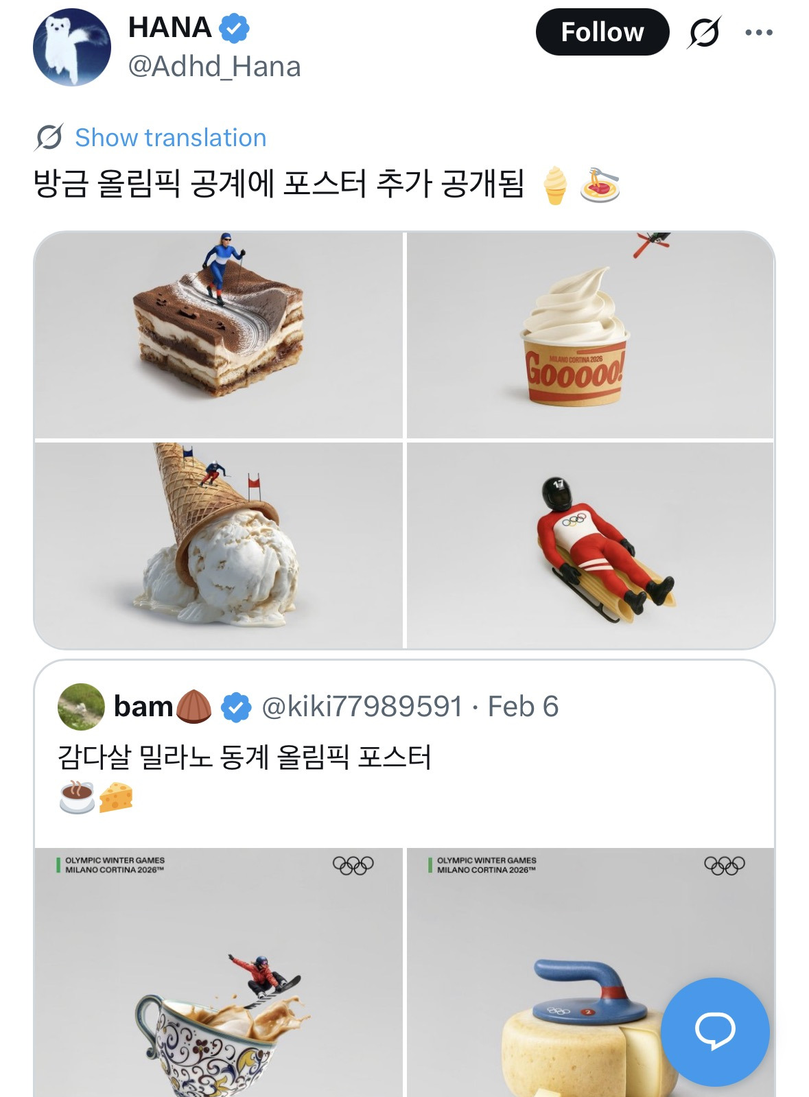 [흥미돋]방금 올림픽 공계에 포스터 추가 공개됨 🍦🍝 작성자Sunmoonstar02|작성시간26.02.08|조회수39,108 목록 댓글 49 글자크기 작게가 글자크기 크게가 출처: https://x.com/Adhd_Hana/status/2020165957856194651?s=20X의 HANA님(@Adhd_Hana)방금 올림픽 공계에 포스터 추가 공개됨 🍦🍝x.com 다음검색 현재 게시글 추가 기능 열기 북마크 공유하기 신고 센터로 신고 댓글 댓글 49 댓글쓰기 답글쓰기 댓글 리스트 작성자제주처돌이 | 작성시간 26.02.08 아이디어 좋아 ㅋㅋㅋ 작성자김동산 | 작성시간 26.02.08 존나 감다살ㅋㅋ 작성자debut | 작성시간 26.02.08 귀엽다 ㅋㅋㅋㅋㅋㅋ 말도 안되던 일본 픽토그램 쑈 생각나네 작성자네잎클로버여시 | 작성시간 26.02.08 넘귀여워 작성자질타 | 작성시간 26.02.08 존귀탱 댓글 전체보기