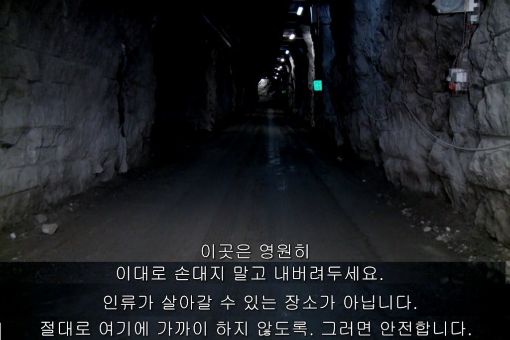 지하 5km에 달하는 동굴 밑에 방사능 폐기물을 보관하고 아무도 못 들어가게 콘크리트로 입구를 밀봉합니다.