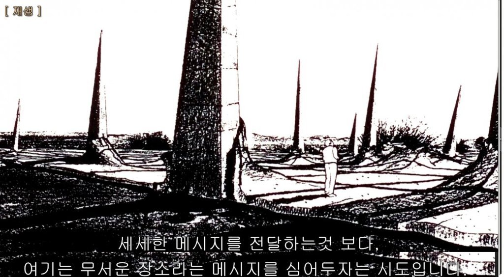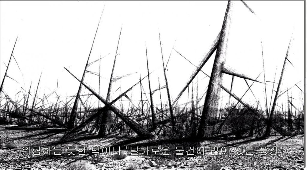 뾰족뾰족한 구조물을 배치해서 위험한 곳이라는 느낌을 직관적으로 표현합니다