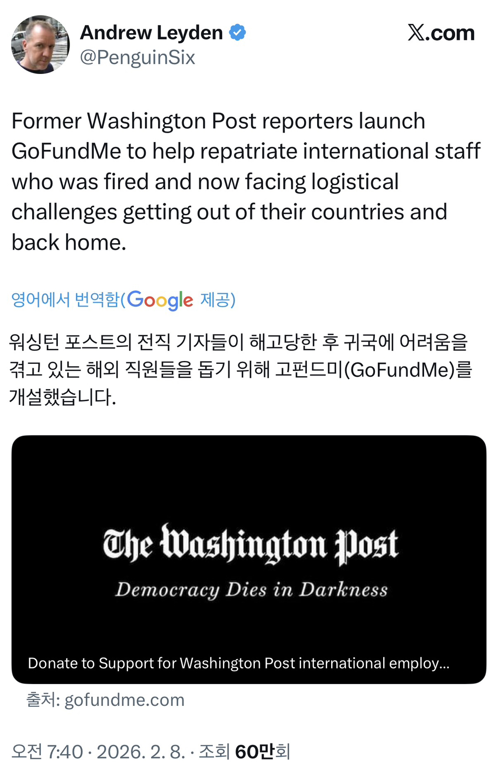 워싱턴 포스트 해외파견 기자들 귀국 비용 위한 펀드레이징 하는중