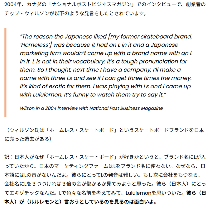 일본인에게 L은 이국적이다. (그래서)계속 생각해보다가 Lululemon이 떠올랐다.