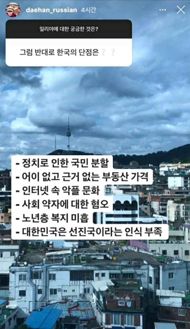 출처 :일리야 인스타스토리https://instagram.com/daehan_russian?igshid=145mglb21r53d