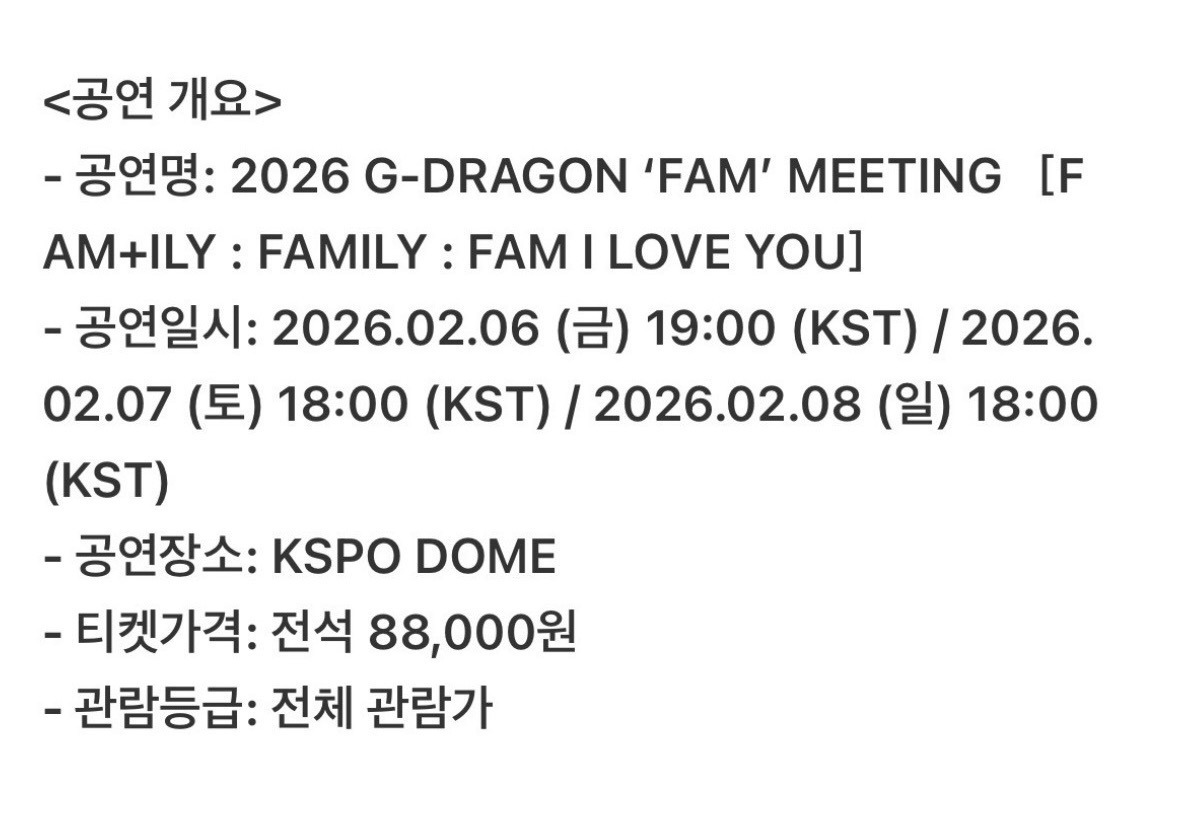 - 가격 : 체조 360도 88,000원(팬미팅 약 3시간 진행)