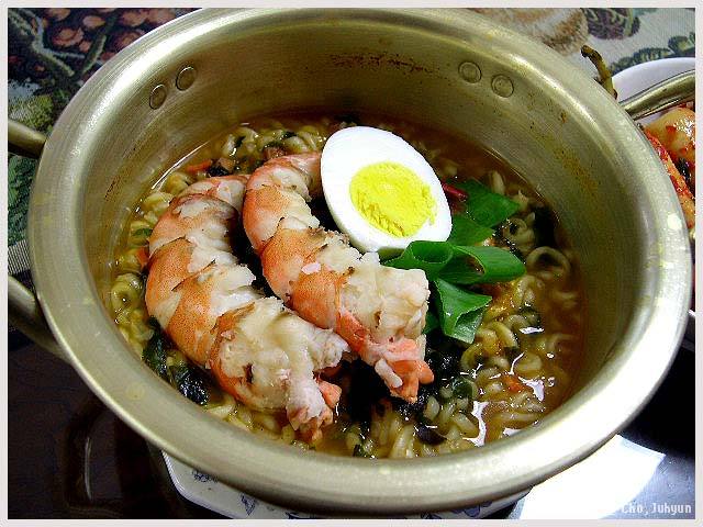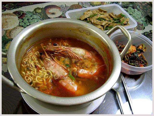 농심 너구리입니다~ 얼큰한맛인데~ 순한맛도 맛있죠 냠냠...대하를 넣고 끓였습니다...