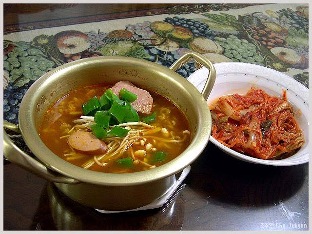 심 보글보글찌개면입니다~ 쏘세지와 스팸을 넣고 부대찌개 처럼 끓였는데 맛있었습니다~ 밥까지 나중에 말아서 먹었는데 쏘주 안주로 아주 좋을거 같은 라면이었어요