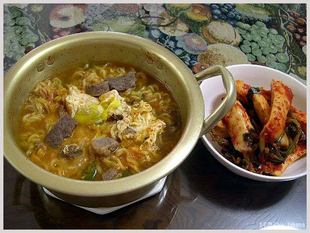 삼양 쇠고기면입니다~ 진짜 소고기를 넣고 끓였습니다..진짜 순한우를 넣구여~
