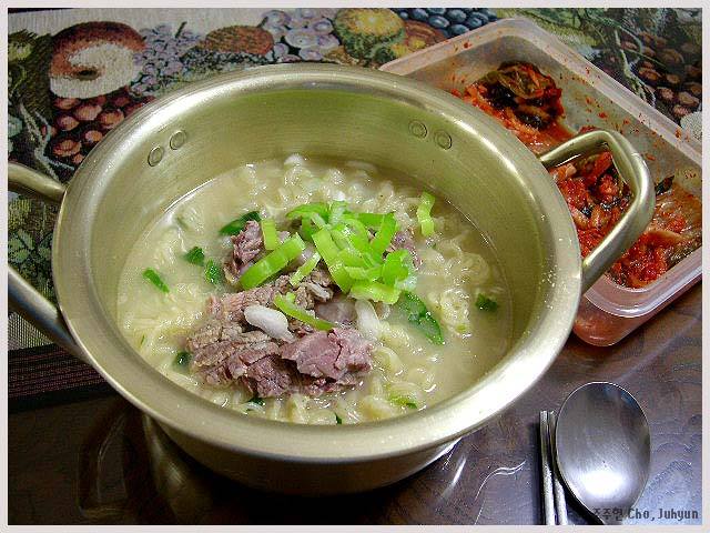 집에 있던 곰국을 넣어서 끓인 사리곰탕면~ 정말 맛있게 먹었는데~ 곰탕을 넣고 끓였더니