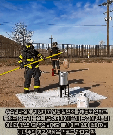 마찬가지의 이유로 기름에 불붙으면 절대 물끼얹으면 안 됨 -
