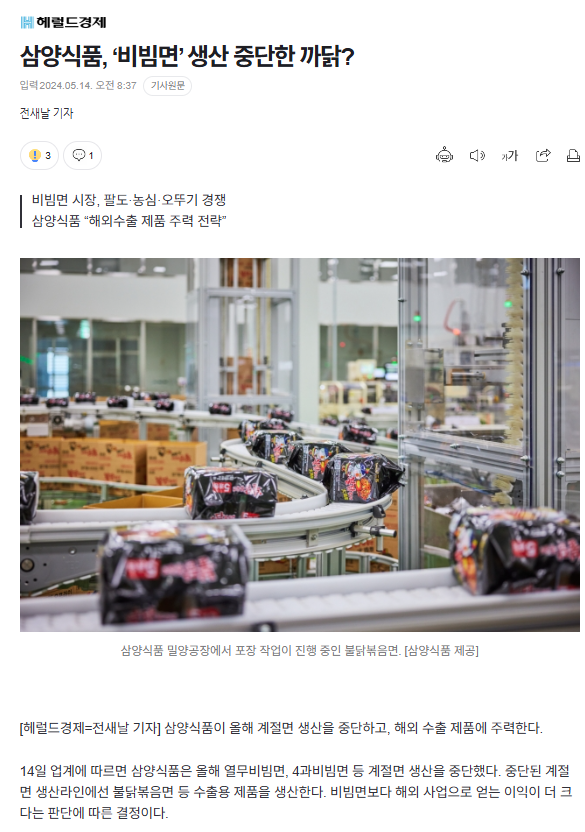 24년 초 삼양이 불닭에 몰빵한다고 열무비빔면과 동생격인 4과비빔면 생산라인