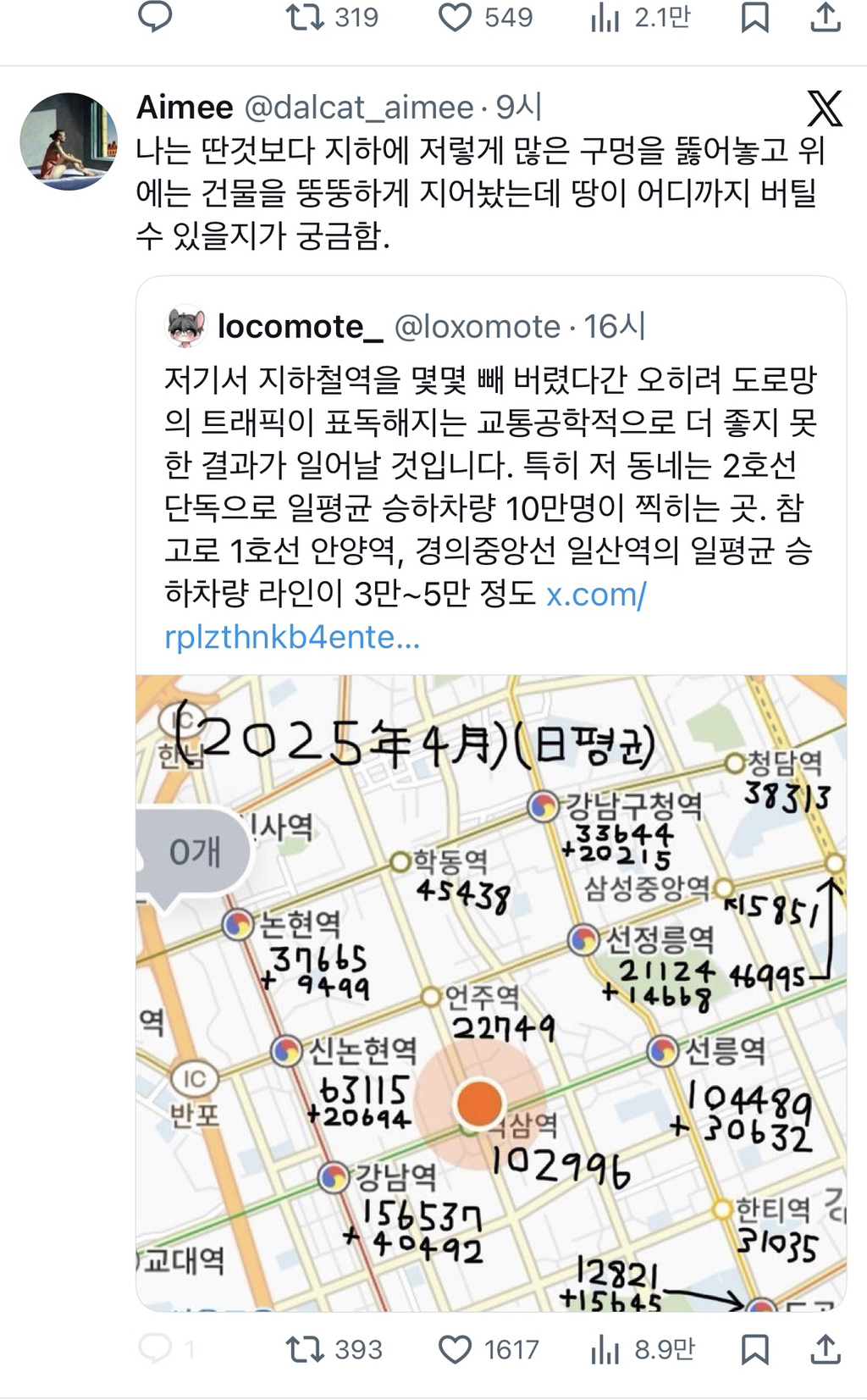 [스크랩] [흥미돋]나는 딴것보다 지하에 저렇게 많은 구멍을 뚫어놓고 위에는 건물을 뚱뚱하게 지어놨는데 땅이 어디까지 버틸 수 있을지가 궁금함 작성자엥엥ㅇ|작성시간26.02.09|조회수27,719 목록 댓글 17 글자크기 작게가 글자크기 크게가 다음검색 스크랩 원문 : *여성시대* 차분한 20대들의 알흠다운 공간 현재 게시글 추가 기능 열기 북마크 공유하기 신고 센터로 신고 댓글 댓글 17 댓글쓰기 답글쓰기 댓글 리스트 작성자메갈핑 | 작성시간 26.02.09 진짜 신기해 백화점 이런것도 지하 6층이런거 다 신기함 작성자누구스 | 작성시간 26.02.09 진짜... 괜찮은거 맞지..? 작성자느개비섹시월드컵출전 | 작성시간 26.02.09 그래서 가끔 싱크홀 생기잔아 작성자핑핑구구구 | 작성시간 26.02.09 진짜 한국 기술력 대단해… 작성자냥르장머리 | 작성시간 26.02.10 싱크홀로 크게 ㅈ되봐야 정신을 차리려나 댓글 전체보기