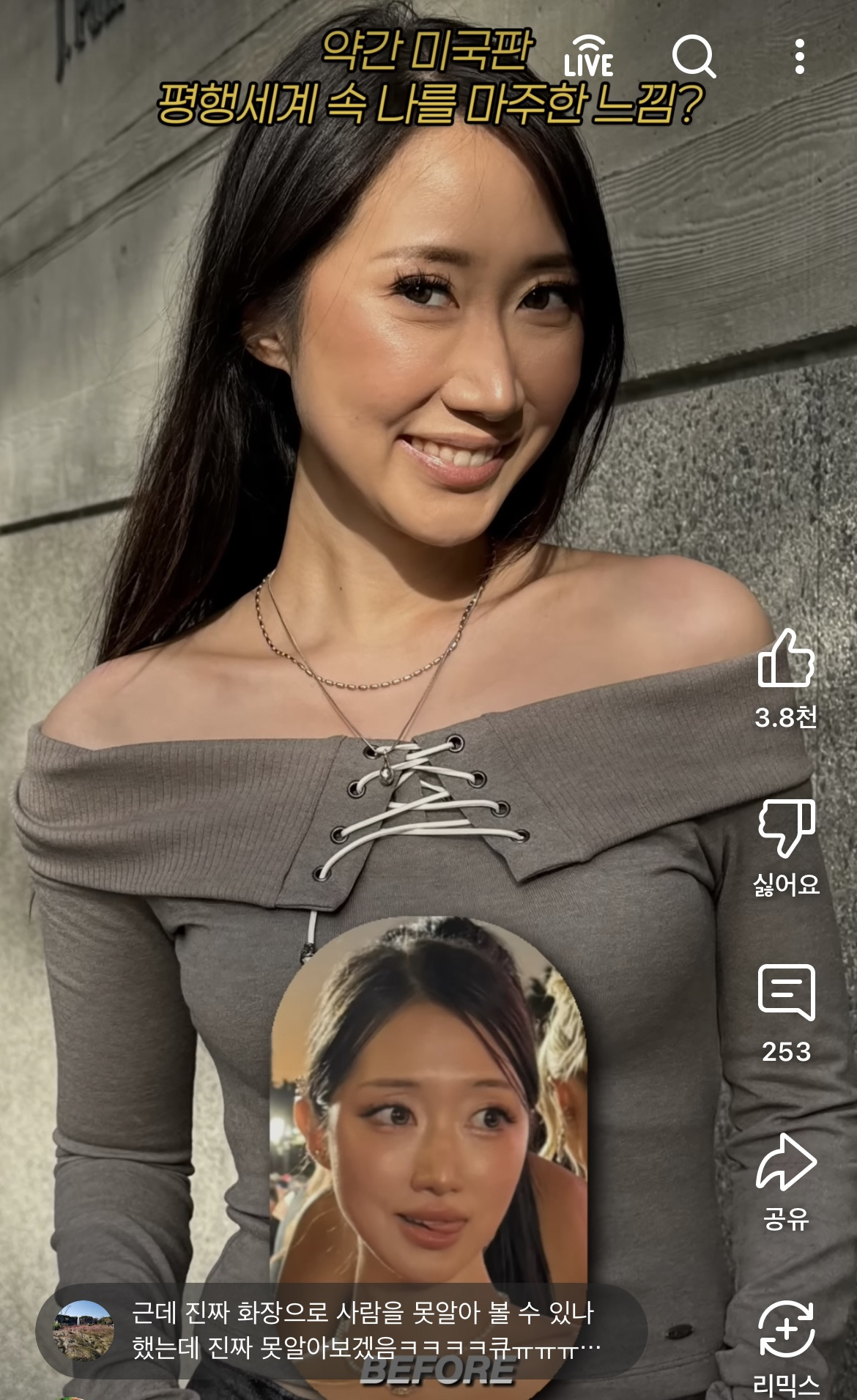 작성자말머리성운좋아 작성시간 26.02.16 걍 딱 교포화장 ㅋㅋㅋㅋㅋㅋ 개웃겼어