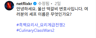 [스크랩] [흥미돋]흑백요리사 식 이름 짓기 작성자메론거북이|작성시간26.02.09|조회수13,151 목록 댓글 218 글자크기 작게가 글자크기 크게가 출처: 흑백요리사 식 이름 짓기 안녕하세요, 경주 김치찌개 경찰관 입니다 다음검색 스크랩 원문 : *여성시대* 차분한 20대들의 알흠다운 공간 현재 게시글 추가 기능 열기 북마크 공유하기 신고 센터로 신고 댓글 댓글 218 댓글쓰기 답글쓰기 댓글 리스트 작성자으쌰 | 작성시간 26.02.10 평창 칼국수 파이터 작성자그것모예요 | 작성시간 26.02.10 평택회경찰 작성자투명에 가까운 블루 | 작성시간 26.02.10 평창떡볶이여고생 작성자안녕하새우뿅뿅 | 작성시간 26.02.10 강남간장게장여름....? 작성자Tinto De Verano | 작성시간 26.02.10 짱구돈까스변호사 댓글 전체보기