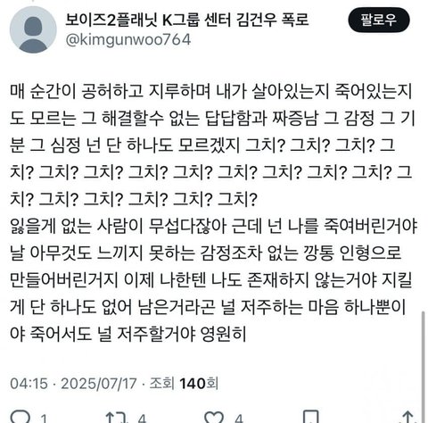 김건우 연습생은 자기가 받고있는 편애의 힘으로 연습생들을 미친듯이 집요하게 괴롭히고 갈궈대며 그걸 즐기기 시작했습니다.
