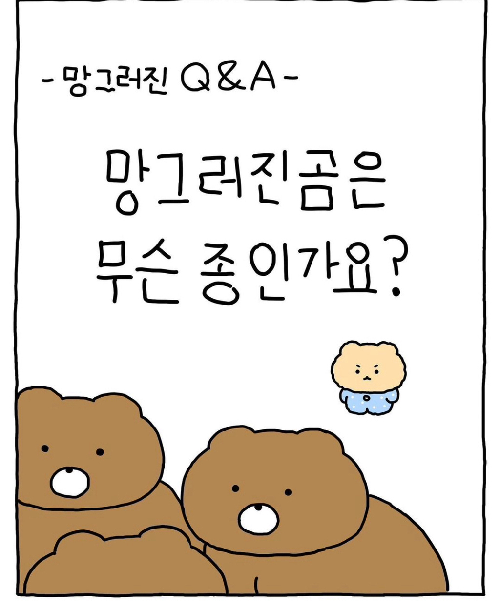 [기타]망그러진곰 원작자가 밝히는 망곰이 정체.jpg 작성자cuzimrockstar|작성시간26.02.09|조회수18,804 목록 댓글 47 글자크기 작게가 글자크기 크게가 출처: 여성시대 cuzimrockstar망곰이는 흙 묻은 감자였음 다음검색 현재 게시글 추가 기능 열기 북마크 공유하기 신고 센터로 신고 댓글 댓글 47 댓글쓰기 답글쓰기 댓글 리스트 작성자얌냐미굳 | 작성시간 26.02.10 작성자착하개살자멍멍 | 작성시간 26.02.10 ㄱㅇㅇ 작성자동구라미라미 | 작성시간 26.02.10 망곰,,,감자곰,,,,돼지곰,,,,뭐든 귀여워 ㅎㅎㅎㅎ 작성자강해린 고양이토끼 | 작성시간 26.02.10 작성자쫀득하다쫀득하고쫀득한 | 작성시간 26.02.10 나는 감자 나는 감자 댓글 전체보기