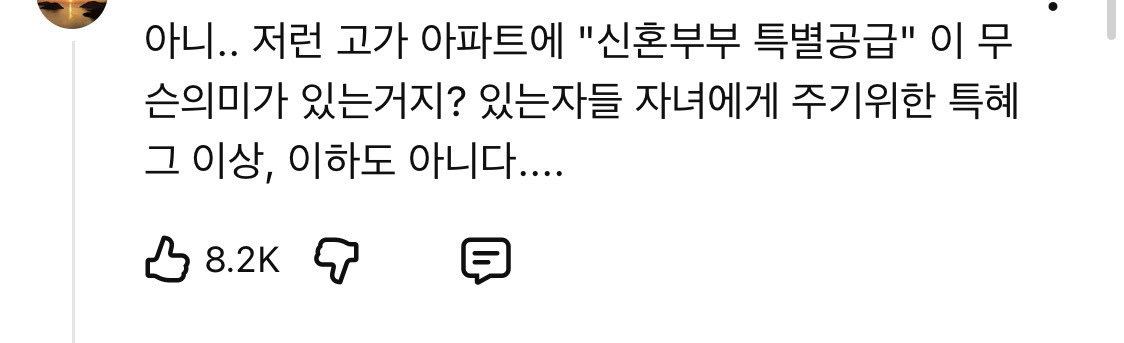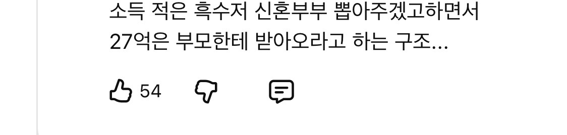 작성자나박찬순댄대 작성시간 26.02.10 애초에 신혼부부특공, 신혼부부 청약제도 기준이 어이없음 (결혼 7년까지, 소득없이 애는 많아야함)