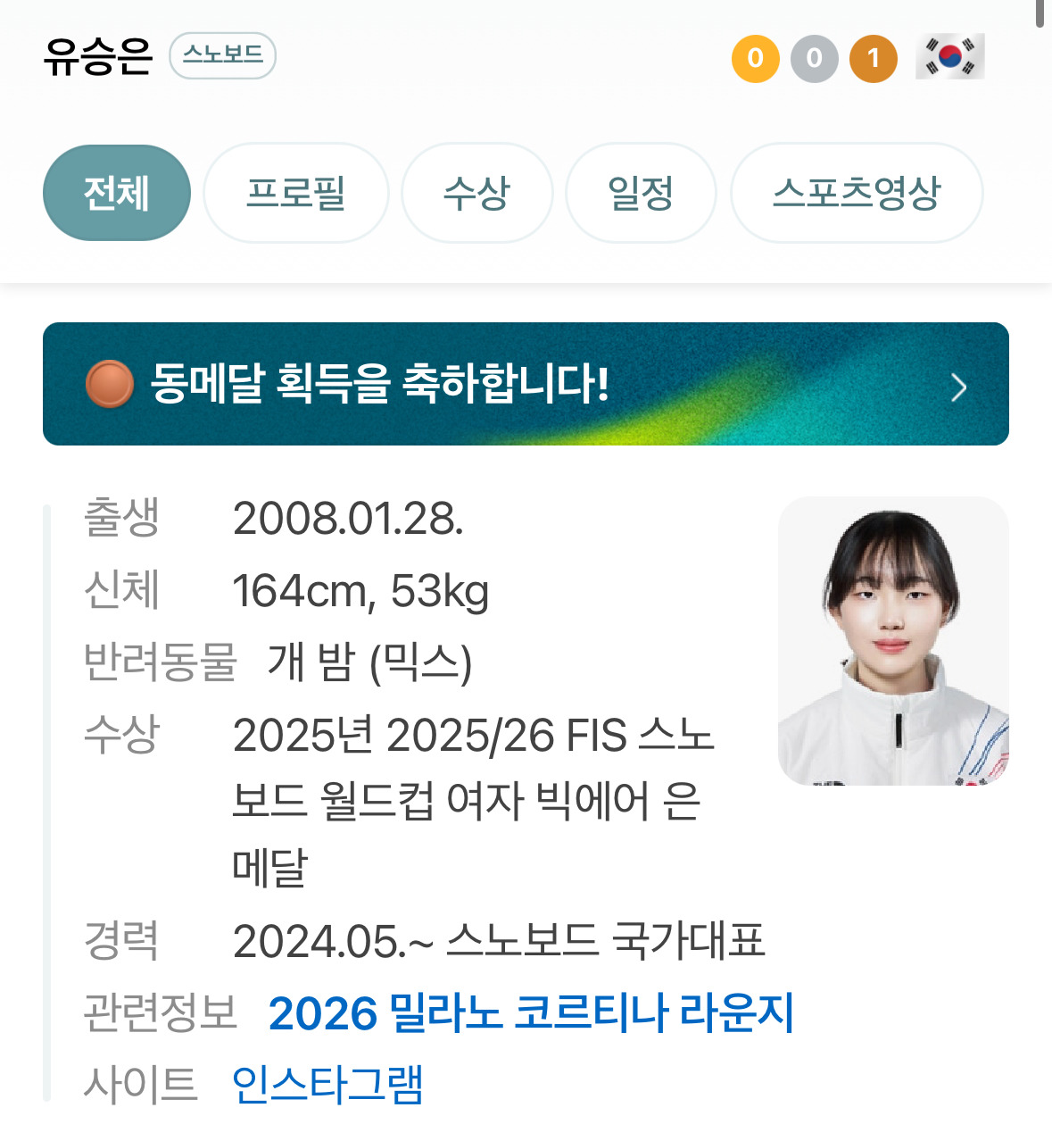 작성자아무생각x 작성시간 26.02.11 너무 멋있다 스노보드에서 메달이라니..... 감격 진짜.....
