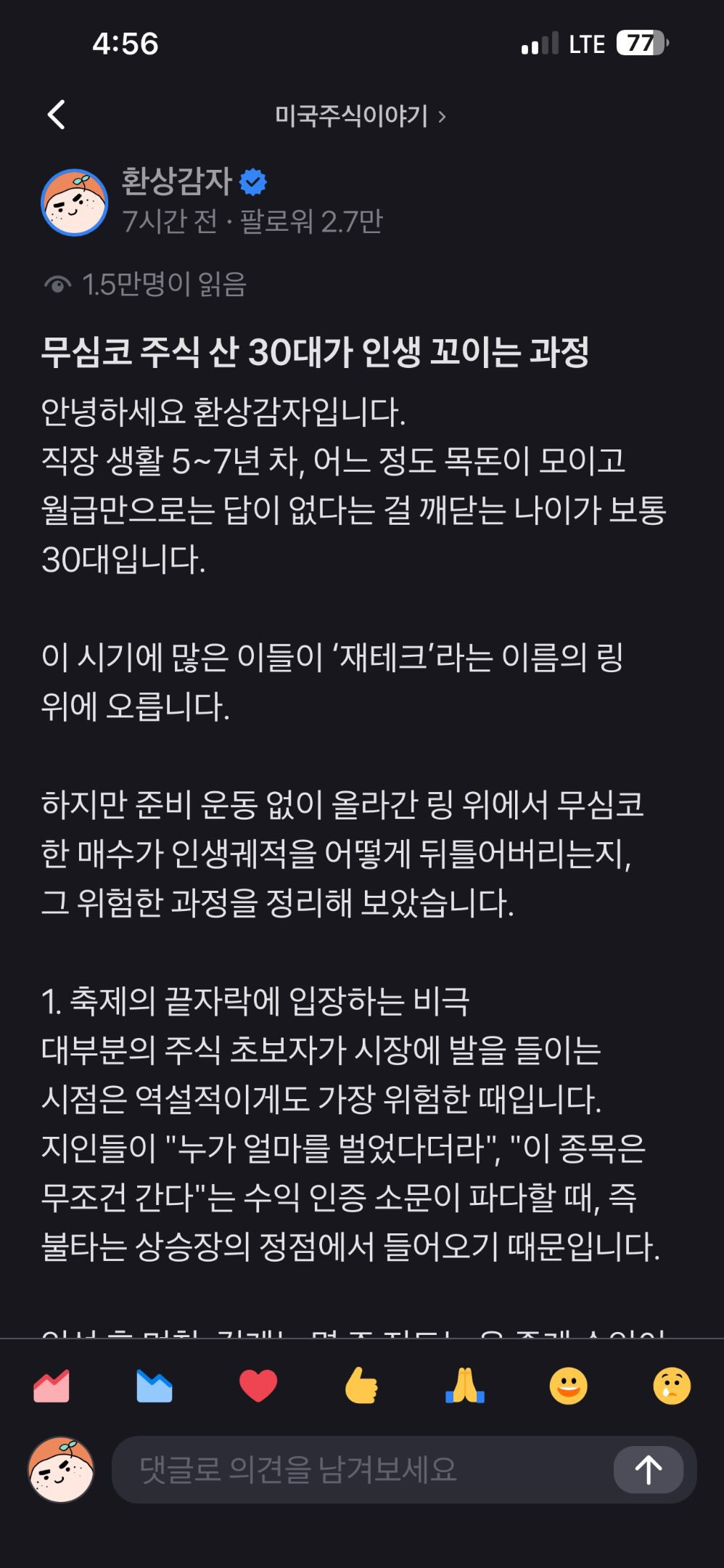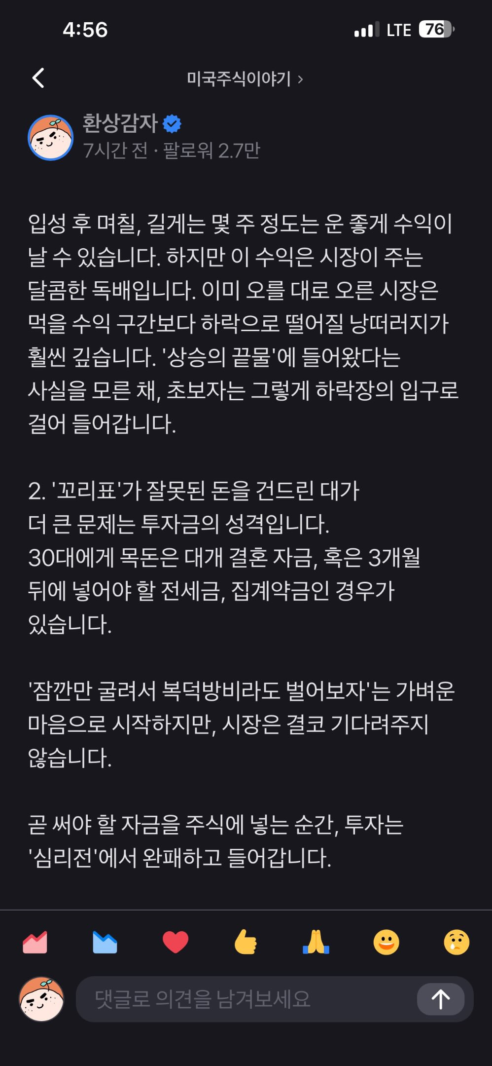 작성자sabrinalove 작성시간 26.02.10 가끔보면 나보고 왜 일찍팔았냐고 나보다 더 아까워 하는 사람들 있거든 그런 사람은 볼때마다 주식하면 안되겠다 라는 생각 했음....매우 위험...지나간거에 미련 못버리는 성격이라면 주식 안하는게 좋음 하더라도 적립식으로 해야함