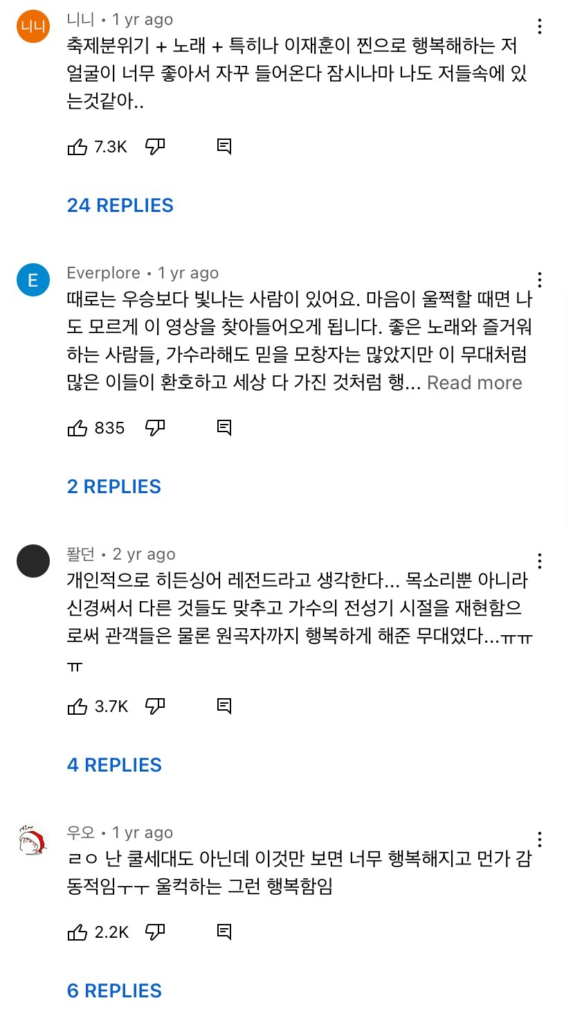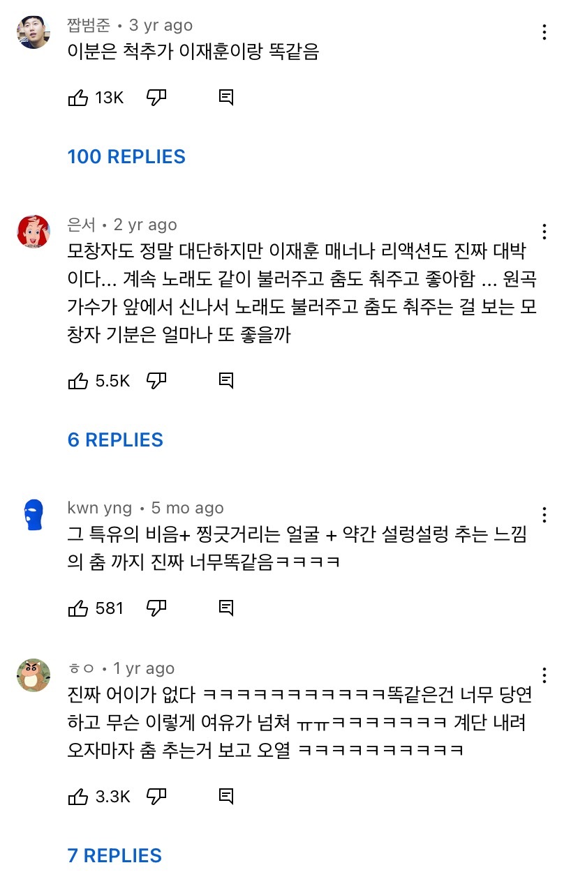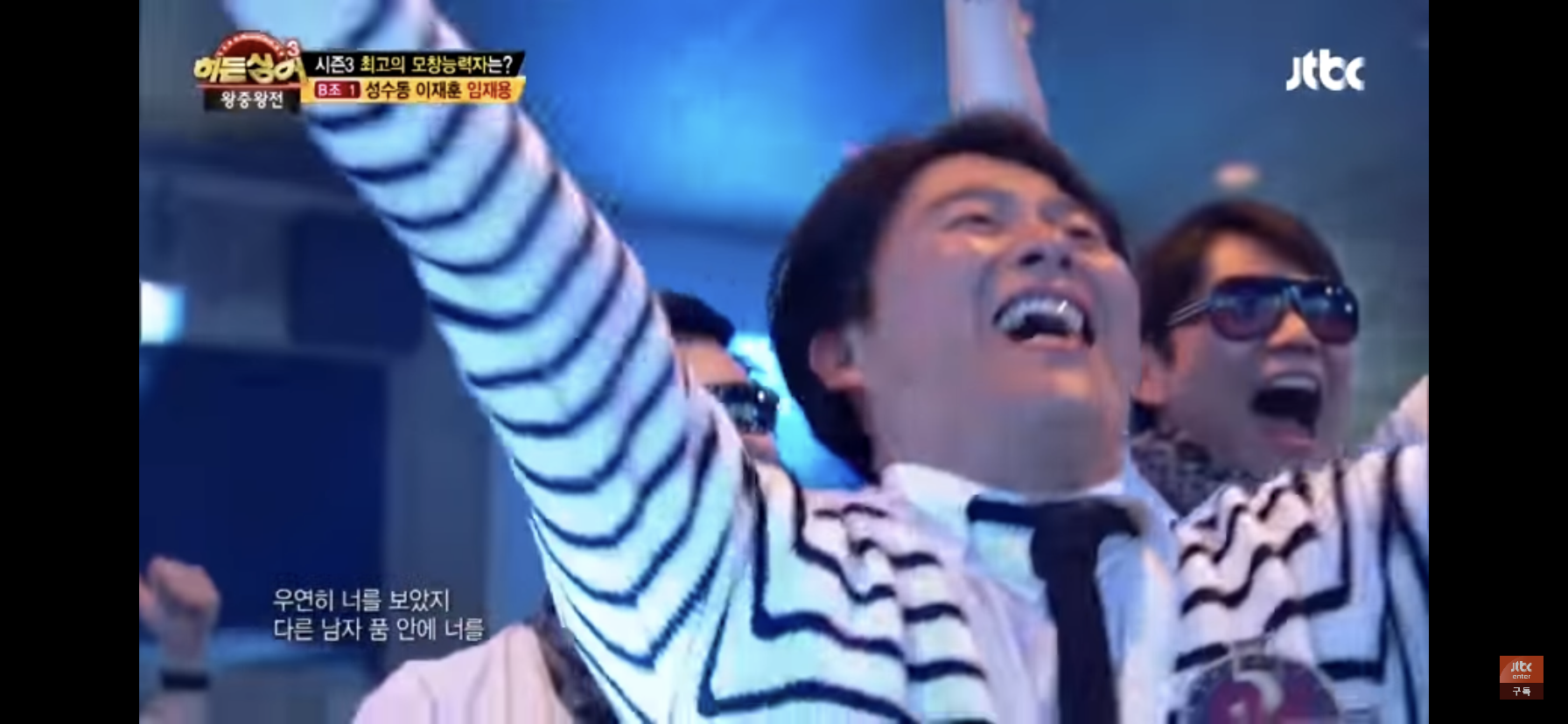 모창은 말할것도 없고 이재훈 코스튬 입고 나와서 그 특유의 몸짓까지 똑같은게 킬포 ㅠㅠㅠ 이 영상 모두가 그때 그 시절 노래에 행복해하고 축제분위기인게 너무 좋아서 가져와봄
