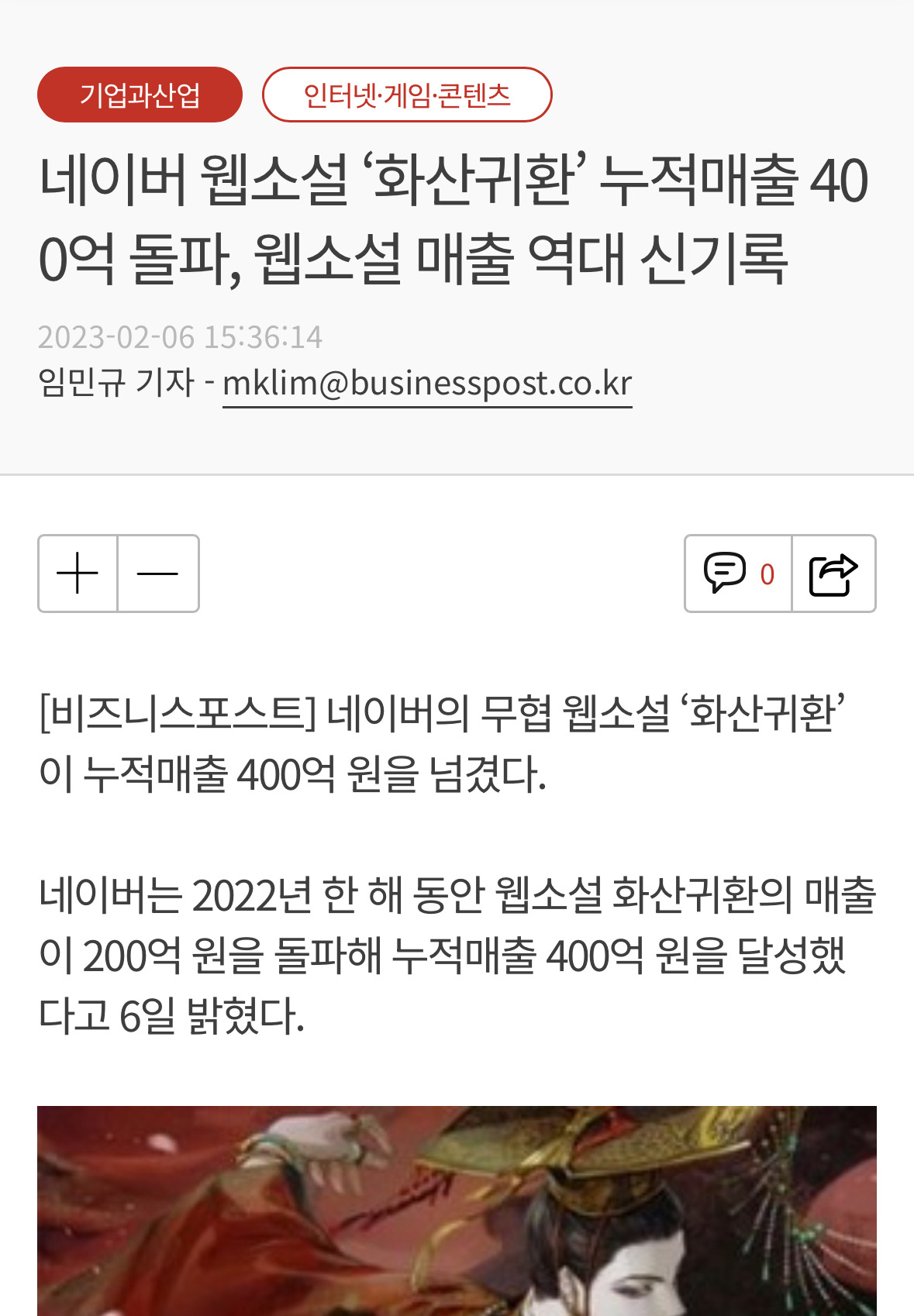 2022년 누적매출 400억 화산귀환 비가 작가