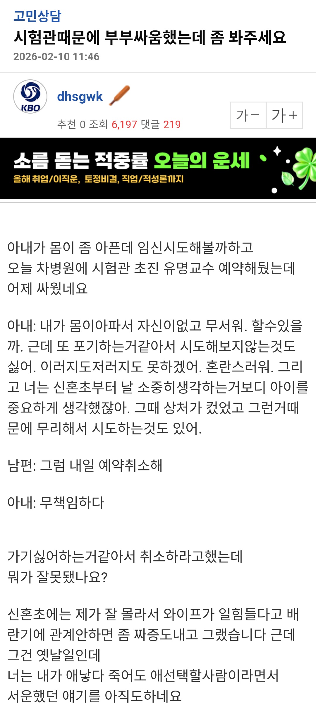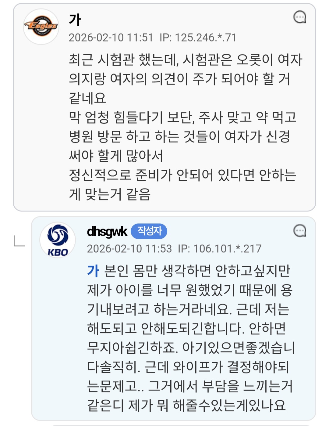 작성자닉네임이열입곱글자씩이나 작성시간 26.02.22 시험관도 치료중에 하나잖아? 자랑할 일도 쪽팔린 일도 아니에용~ 아내분이 참고 남편 분 사랑으로 보듬고 칭찬해서 해결하세용~